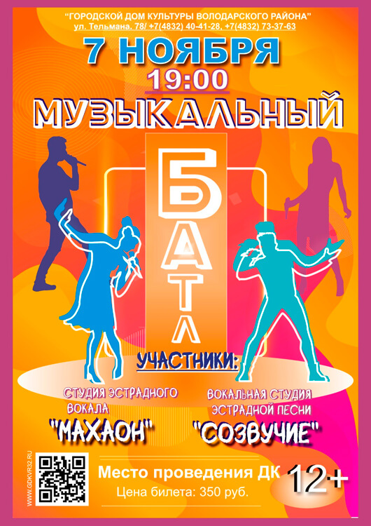 Погрузитесь в яркий мир живой музыки, где неординарное, яркое исполнение песен разной жанровой направленности создают мощное и в то же время душевное звучание. Музыкальный батл — это противостояние двух разных коллективов и смелое исполнение различных музыкальных номинаций: истоки (народная песня), музыкальный кинохит, рок- хит и это не предел того, что будет происходить на сцене! Вы услышите живое исполнение совершенно разных коллективов, наполненное энергией и искренностью, которое заставляет сердце биться в такт ритму.