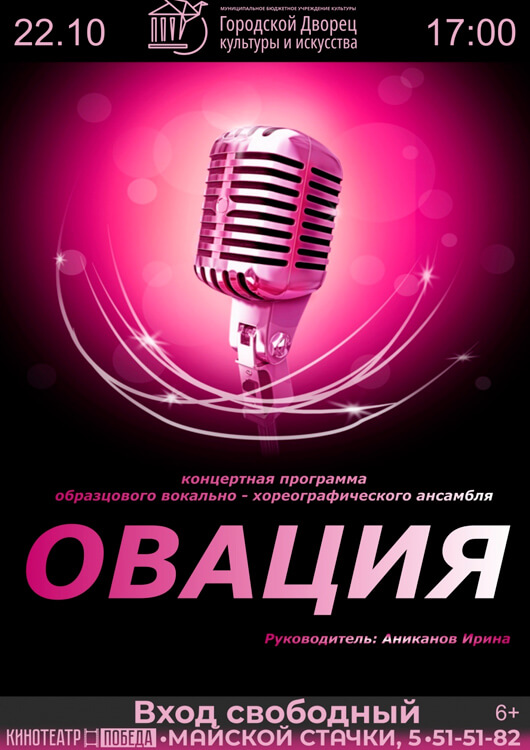 Вас ждет настоящий праздник искусства с участием образцового вокально-хореографического ансамбля "Овация" из ДК Володарского района.