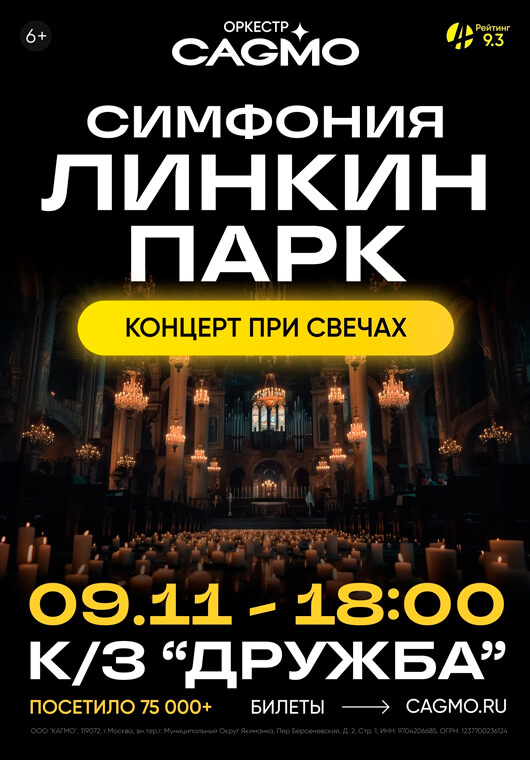 Камерный состав CAGMO представляет уникальную концертную программу «Симфония Линкин Парк при свечах», основанную на творчестве легендарной рок-группы.