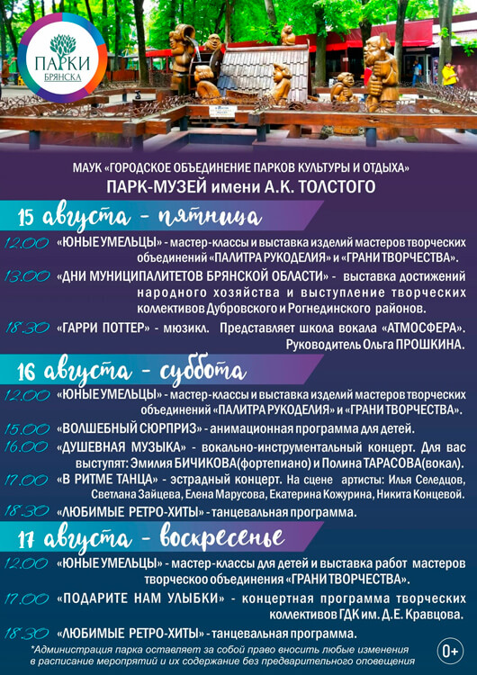 Парки Брянска подготовили для вас мероприятия на любой вкус. В этот день вас ждут: