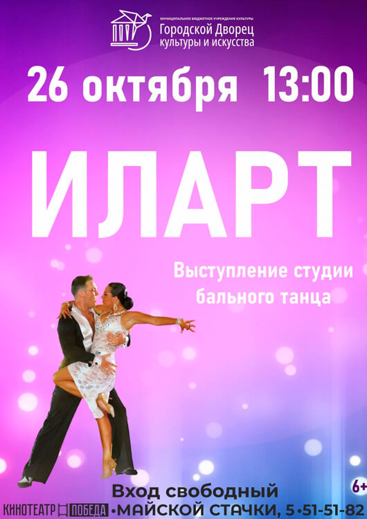 "Иларт" – это не просто студия, это целая вселенная, где рождаются танцы, где каждый шаг наполнен смыслом, а каждое движение рассказывает свою уникальную историю. Мы приглашаем вас стать свидетелями этого волшебства, где классические ритмы вальса переплетаются с огненным темпераментом танго, а элегантность европейской программы гармонично сочетается с зажигательной энергией латиноамериканских танцев.