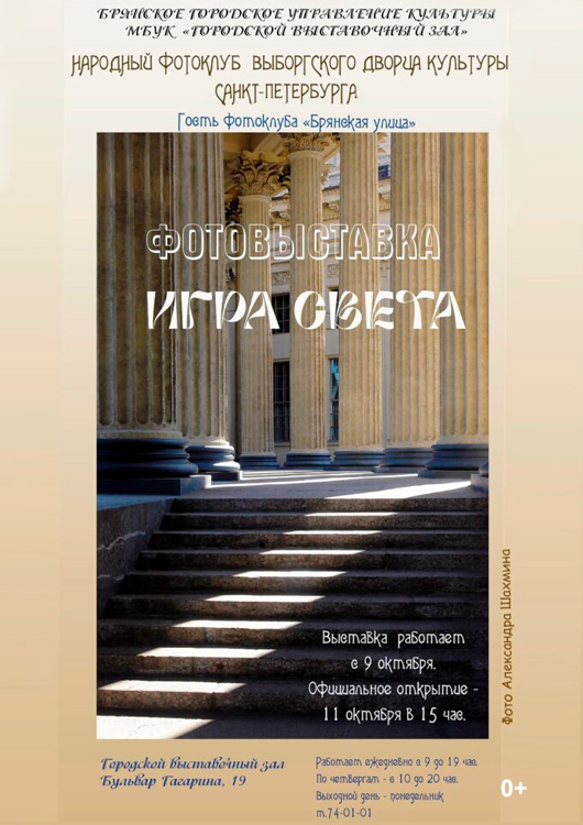 Фотографы различают разные оттенки света: мягкий и жесткий, естественный и искусственный, прямой и отражённый. На выставке «Игра света» представлено явление света. О чем он расскажет? Что утаит? Что увидели питерские фотографы-виртуозы и что увидят зрители? Бесспорно, одно: в каждом снимке на выставке есть не только игра, но и волшебство.